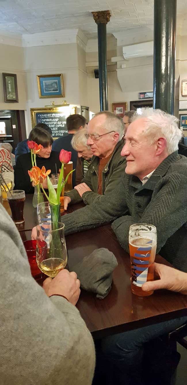 A mini reunion with some former SMR colleagues at the William Morris Gallery, Walthamstow, 21/04/23. From left - Andrea, me, Nick Davis and Sally Brooks. (Photo by Ian Blair, whom we met by happy coincidence.) From Peter James