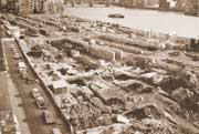 Most of the remains had been cleared away prior to redevelopment, and so the proposed archaeological investigation was an example of “Rescue Archaeology”. This term then applied to excavations that took place just before rebuilding began. London was already in the throes of a major reconstruction, with 19th-century offices and warehouses being torn down and replaced by high-rise buildings with deep basements.