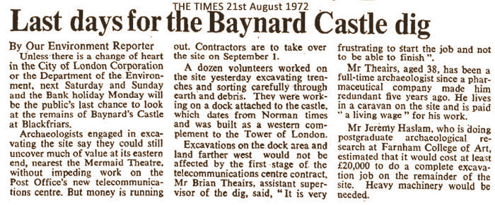Guildhall Museum’s archaeological budget was £8,140. After the publicity generated by Baynard’s it rose to £17,695 in 1972 and led directly to the establishment of the DUA the following year. Just three years later in 1975 when the Museum of London finally came into being, the DUA already had an annual budget of an eye-watering £250,000 (Hebditch 1978, 31).