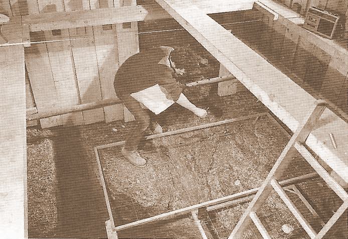 trenches excavated in the enclosed basements of the Metal Exchange buildings while soft-stripping of the higher floors progressed. In other such subterranean sites elsewhere in the City, illumination would often be powered by a diesel generator gently humming nearby in an unventilated corner of the cellar: the basements at Leadenhall, however, enjoyed mains electricity.