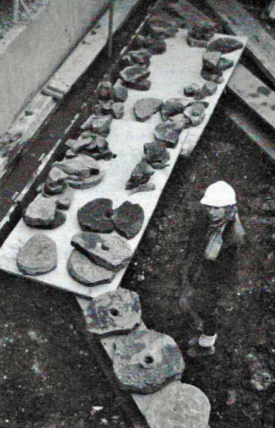 One such multi-storey carpark stood on what had been Three Cranes Wharf in the Vintry, and became the thoroughly waterlogged, timber-rich Thames Exchange excavations (TEX88). This was a develop-funded project, supported by Kumagai Gumi UK. The on-site supervisors were Chrissie Harrison, Jo Stephenson and Morag Coloquon, truly a triumvirate to be reckoned with.