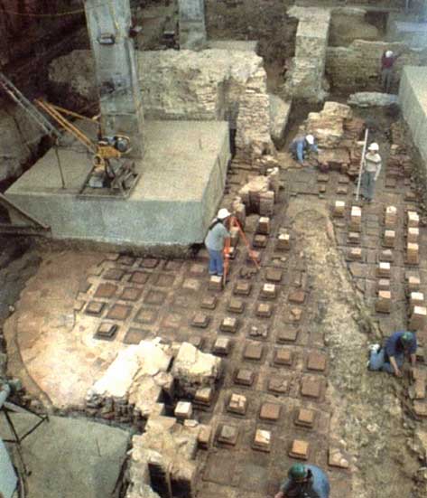 The work involved archaeologists mounting controlled excavations on the eastern part of this large 70m long site followed by a protracted “watching brief” on the western half. As was normal in those days, we didn’t enjoy sole occupancy but shared the site with piling rigs, jackhammers, muck-away lorries, mechanical excavators and the tower-crane’s securely hoisted loads.