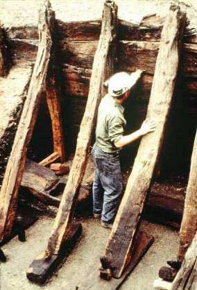 This is the late Roman timber-built quay which was deliberately dismantled in the 3th century, and then was totally covered by foreshore deposits. A signal end to Londinium’s once busy port.